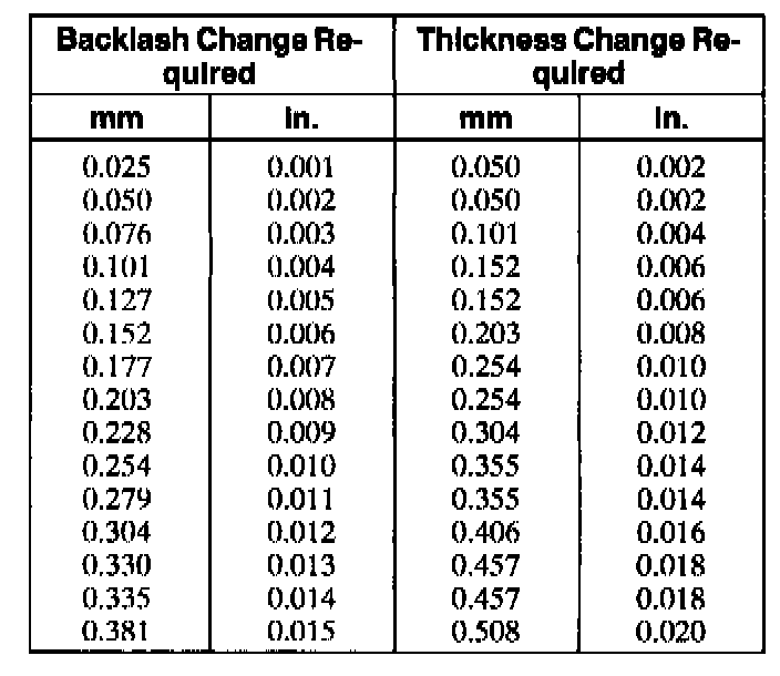 50. Note: If the backlash is not within the specifications, correct it by increasing the thickness of one differential bearing shim and decreasing the thickness on the other differential bearing shim by the same amount.