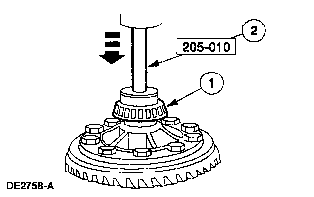 - Using a suitable press and the special tool, press the pinion bearing until it is firmly seated on the pinion gear.