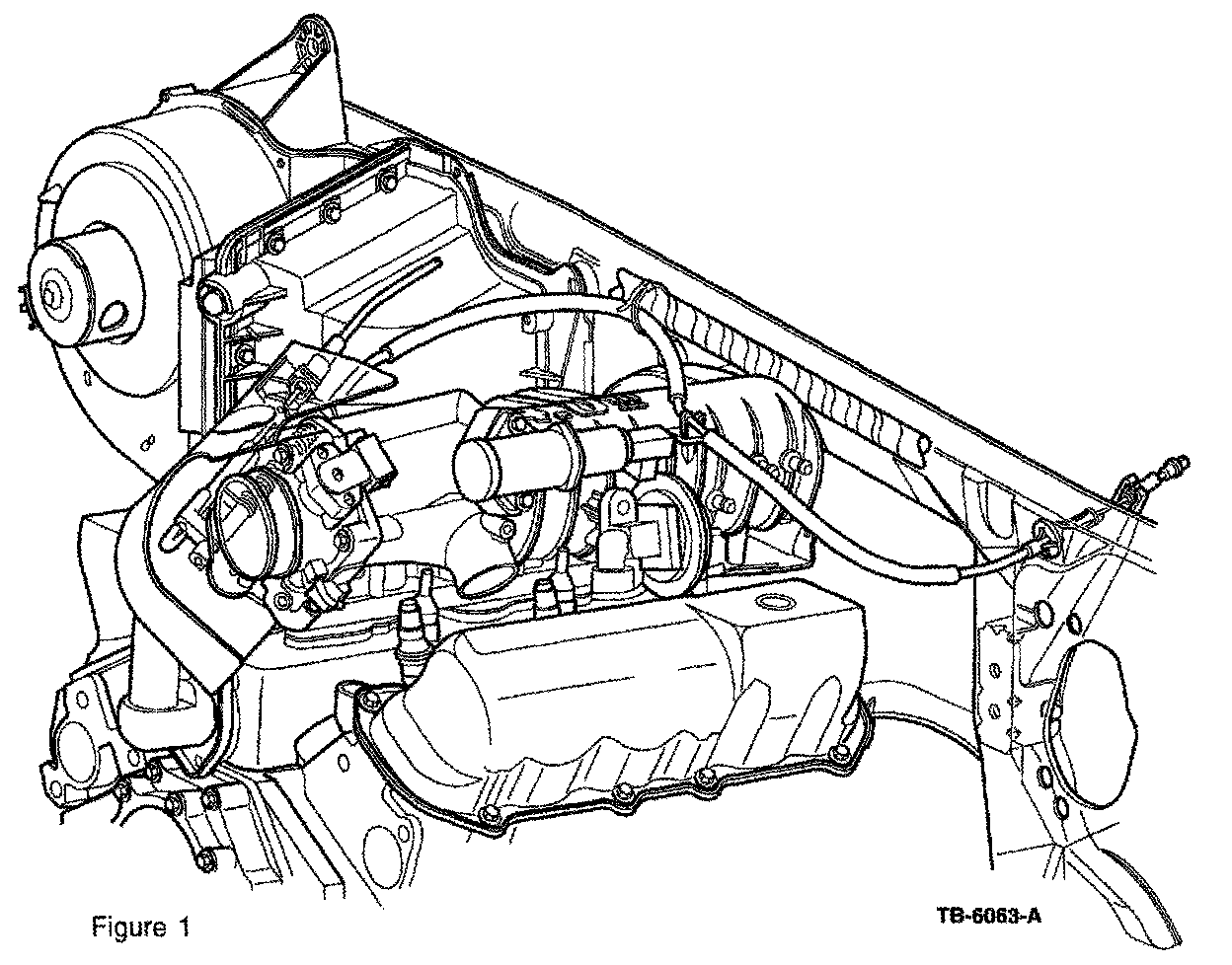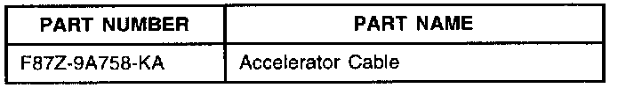 1. Attach new Accelerator Cable (F87Z-9A758-KA) on the same plastic retaining clip used with the original cable.