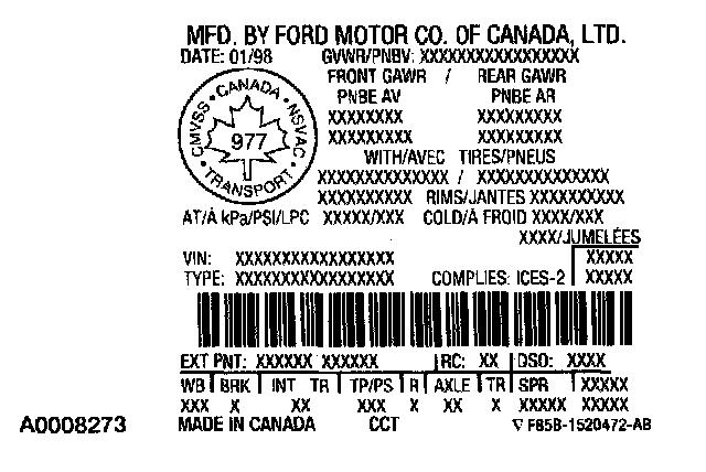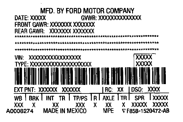 Powertrain calibration information is printed in the lower right corner of the Vehicle Certification Label. Only the base calibration information is printed. Revision levels will not appear, however, they can be found in On Line Automotive Service Information System (OASIS). For the current model year, Ford Motor Company is using three different protocols which describe powertrain base calibration. These protocols are designed to provide worldwide standardization for vehicle calibration. If the electronic calibration strategy has been used since 1998 and carried into the current model year, protocol 1 will be used. Refer to Protocol 1. If the electronic calibration strategy has been used since 1999 and is carried into the current model year, protocol 2 will be used. Refer to Protocol 2. For new electronic calibration strategies for the current model year, use protocol 3.