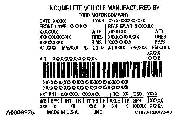 Vehicle Certification (VC) Label-Incomplete Vehicle (Typical)