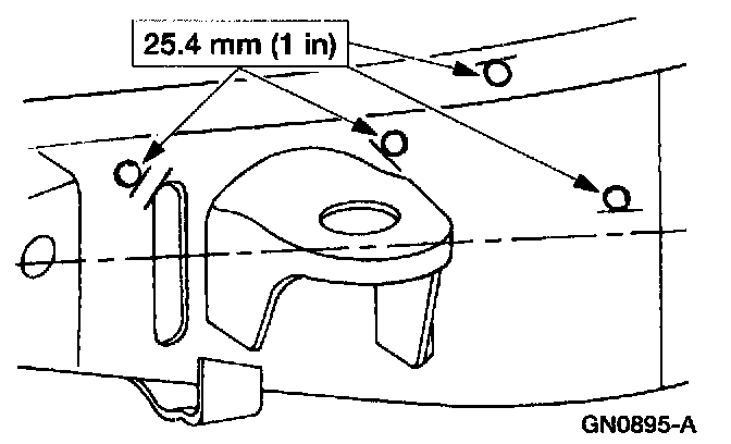 - The drilled hole is at least the specified distance from any other existing bracket or component of the frame.
