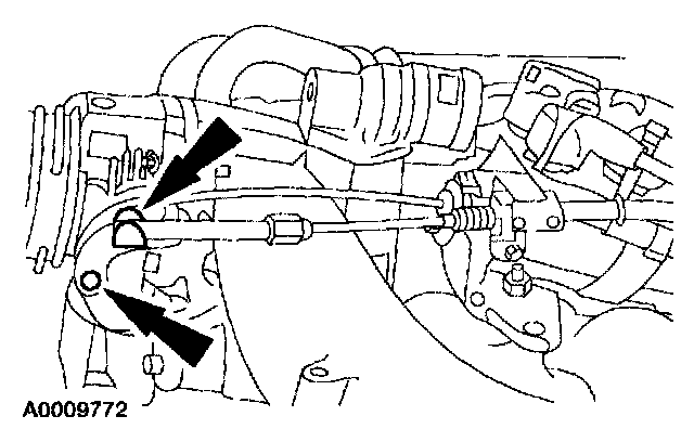 29. Position the accelerator cable and, if equipped, the speed control actuator cable. Install the bolts.