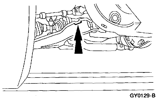 ^ MAKE SURE THE JACK AND JACK STANDS ARE PROPERLY LOCATED TO PREVENT THE VEHICLE FROM FALLING.