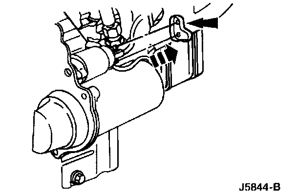 1 Remove the starter motor ground cable nut and disconnect the starter motor ground cable.