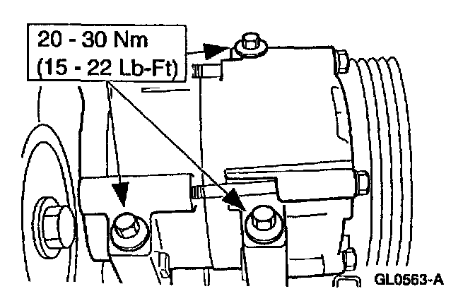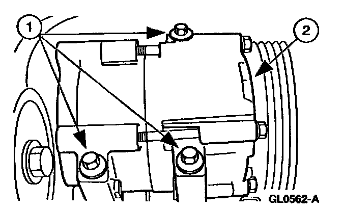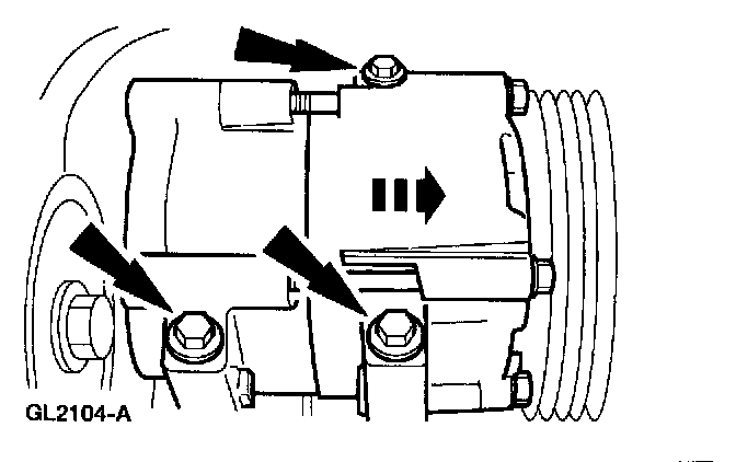 NOTE: When installing the A/C compressor,leave the bolts loose until the A/C manifold bolt is tightened.