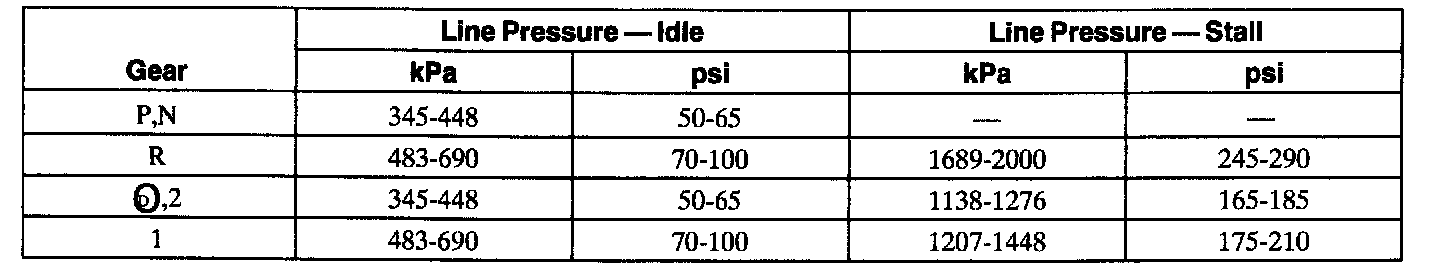 Line Pressure Chart