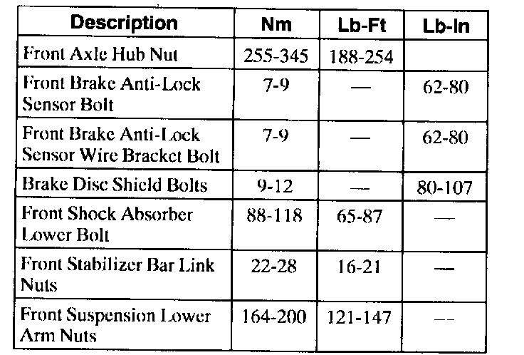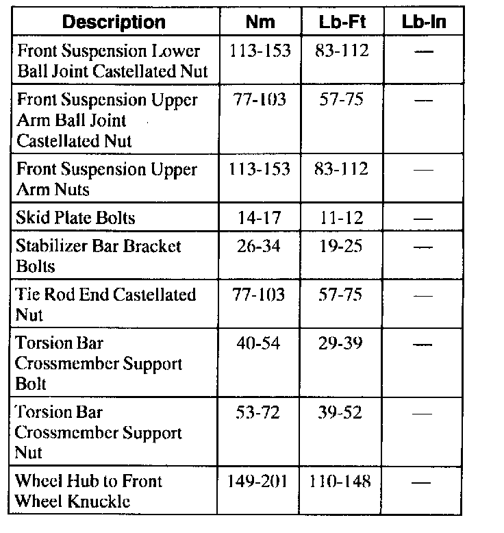Torque Specifications