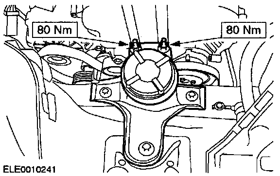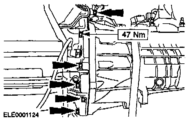 8. NOTE: Insert/screw on the bolts and nuts fingertight. Install the front engine mounting.