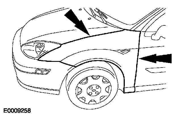 - Adjust the clearance between the fender and the hood, open the hood and tighten the front bolt on the edge of the fender.