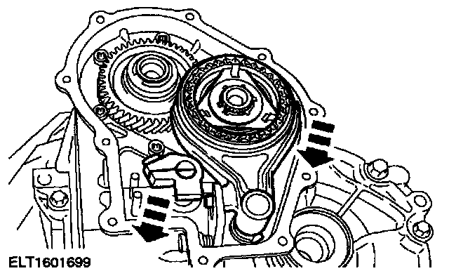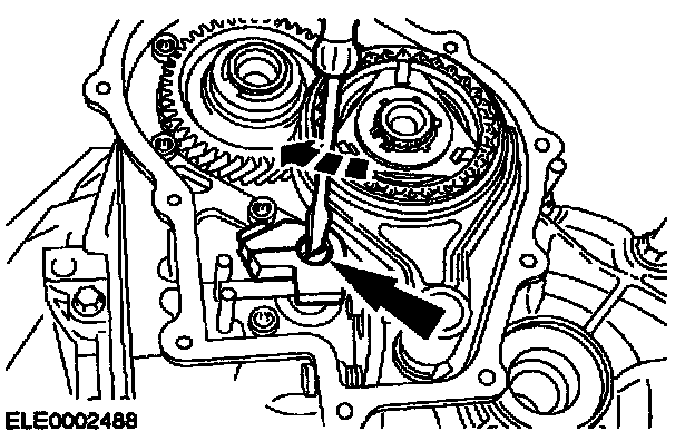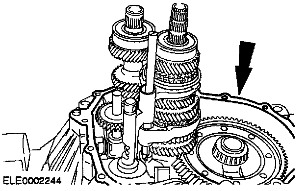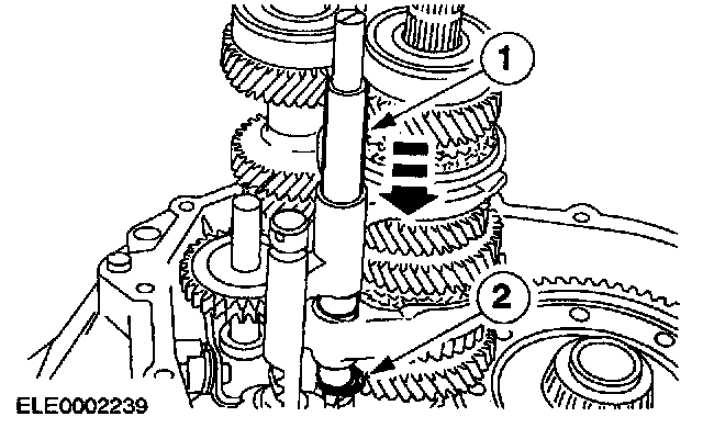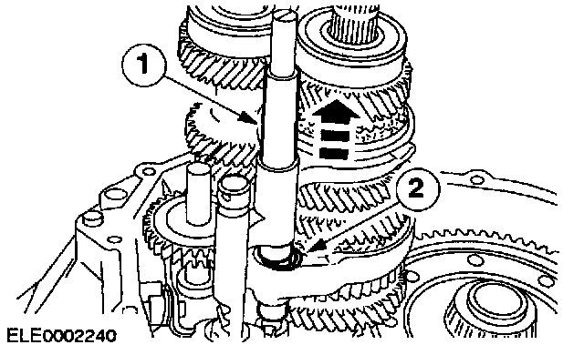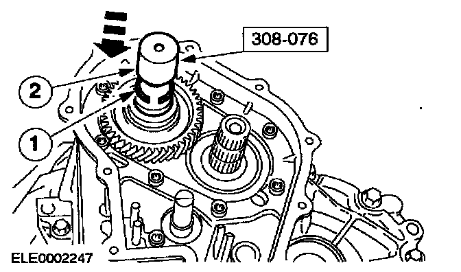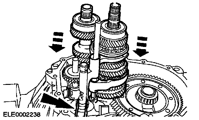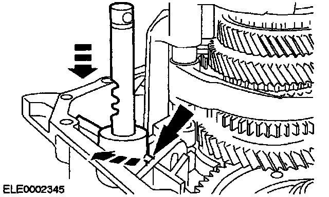 2. Push on the fifth gear synchronizer unit until it reaches the drive plate.