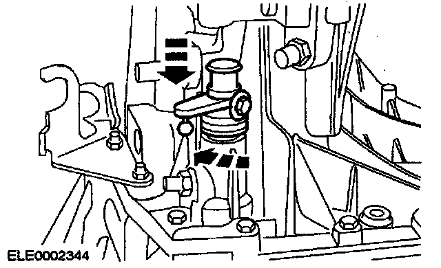 - Turn the selector shaft clockwise until the reverse/fifth gear passage is reached, then press downwards.