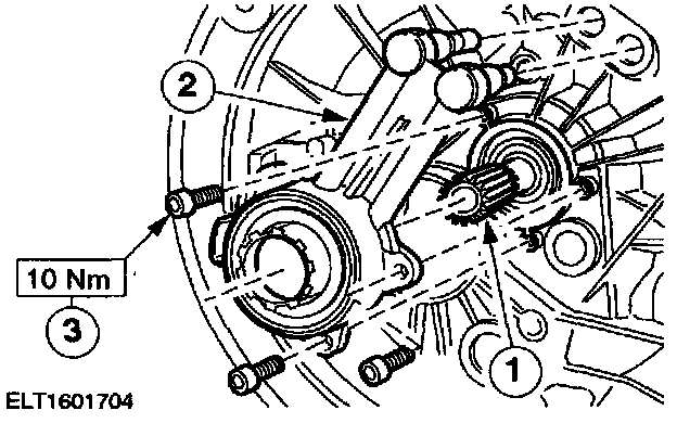 3. Tighten the bolts evenly. In doing so, press the input shaft oil seal into the transmission housing.