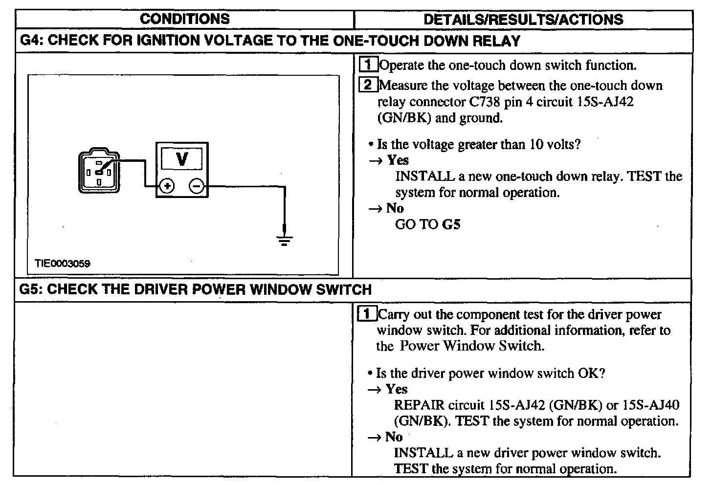 Test G: One Touch Down Feature Is Inoperative