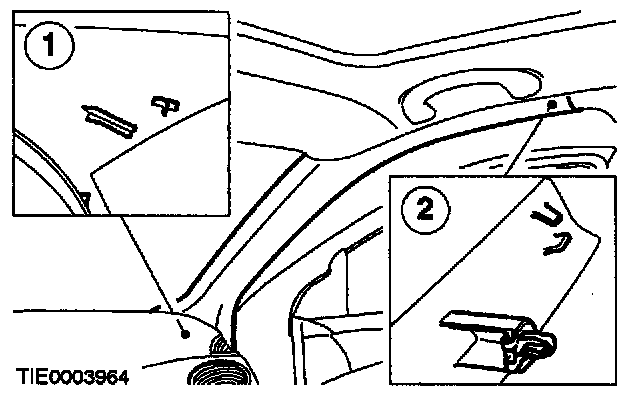 ^ Place two blocks of suitable material between the headliner and the roof panel to act as spacers.