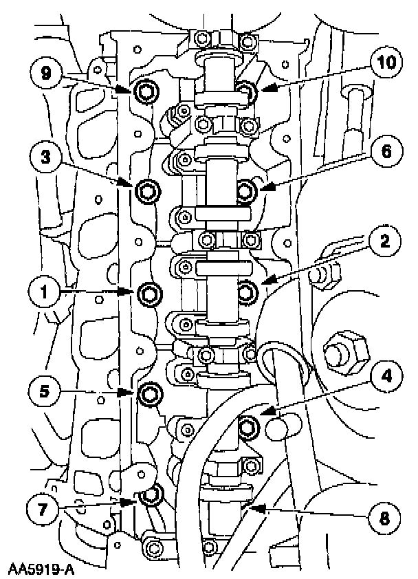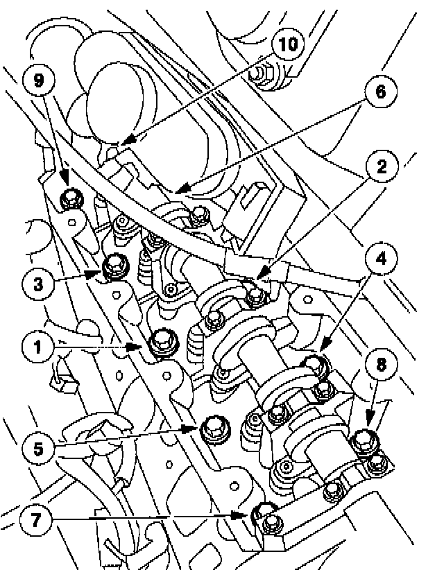 Tighten the bolts in sequence and six stages shown.