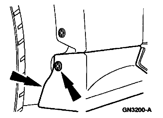 3. Remove the screw, the two pin-type retainers and front rocker panel moulding.