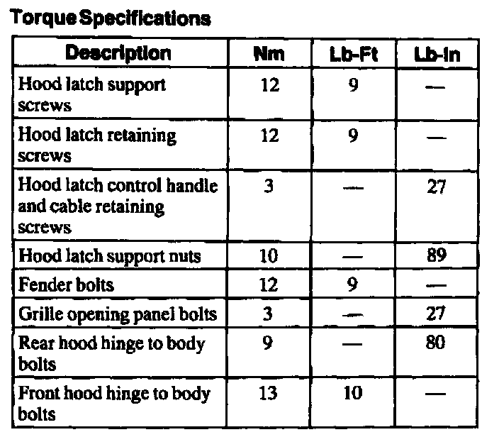 Torque Specifications: