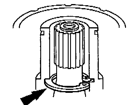 8. Pull the special tool up quickly while keeping the tool shaft against the side of the nose opening and remove the snap ring.