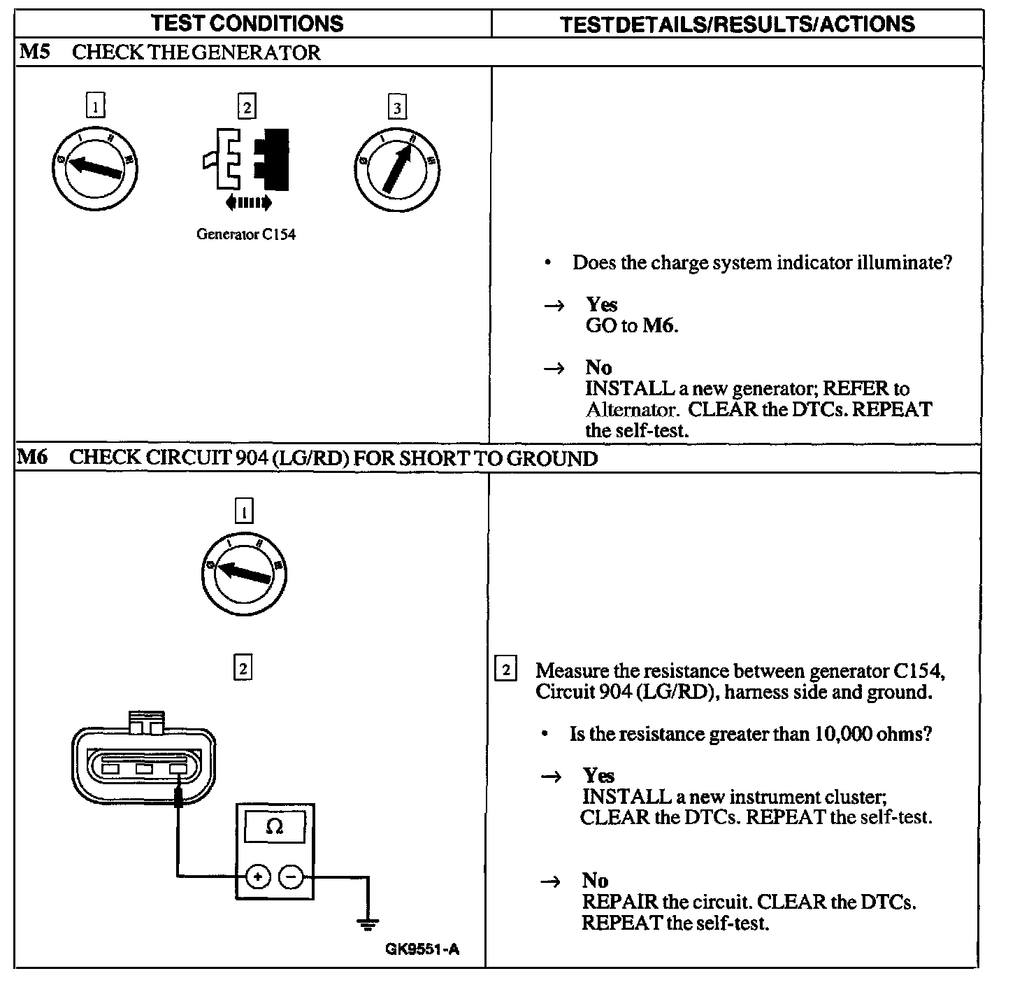 Test M: Charge System Warning Indicator Is Never/Always on