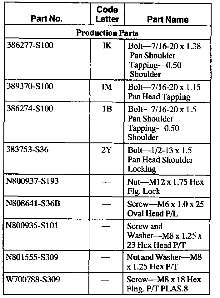 Parts Replacement Chart