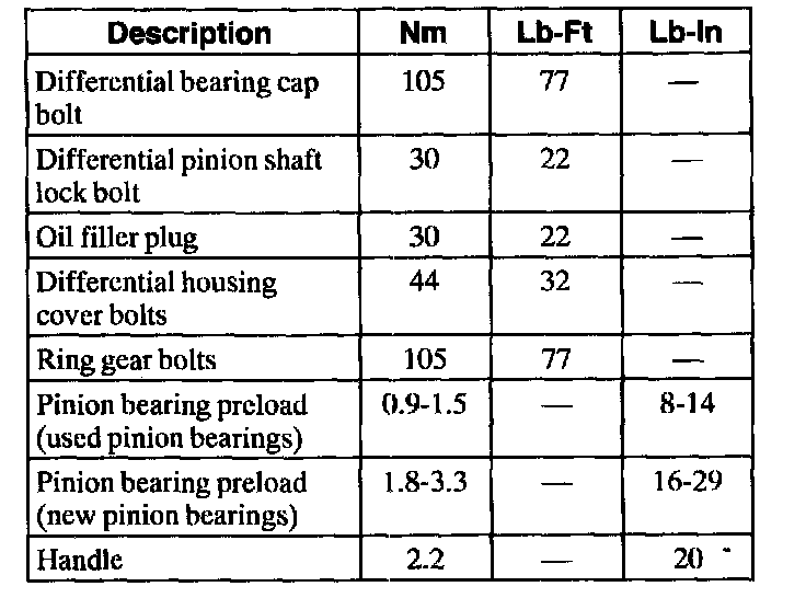 Torque Specifications