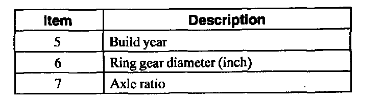 The plant code denotes a particular axle design and specific ratio. In addition, the plant code will not change as long as that particular axle assembly never undergoes an external design change. If, however, an internal design change takes place during the production life of the axle and that internal change affects parts interchangeability, a dash and numerical suffix is added to the plant code. This means that as an assembly both axles are interchangeable; however, internally they are different. Therefore, each requires different internal parts at the time of repair.