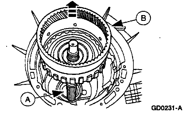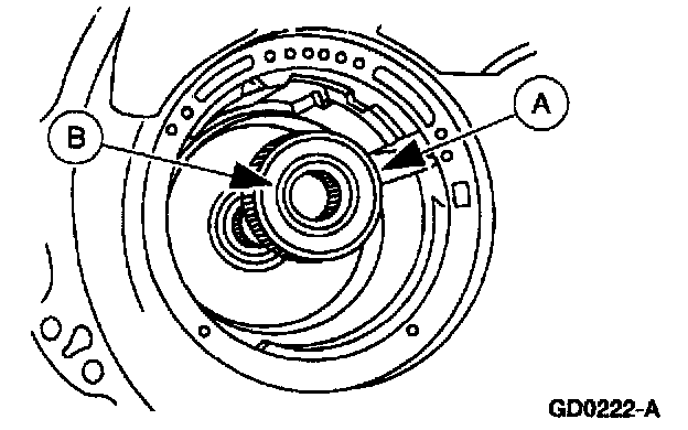 40. Rotate the (A) reverse sun gear to align with the (B) overdrive band anchor pin.