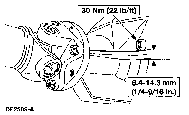4. Fill the rear axle with SAE 80W-90 Premium Rear Axle Lubricant XY-80W90-QL or equivalent meeting Ford specification WSP-M2C197-A to the level shown, approximately 3.25 - 3.50 liters (6.9 - 7.4 pints), and install the filler plug near the vehicle.
