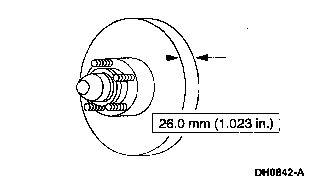 7. On 4x2 vehicles, measure the brake disc and hub for minimum thickness.