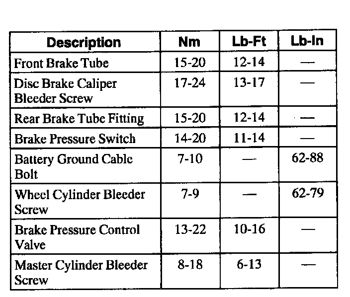 Torque Specifications