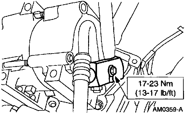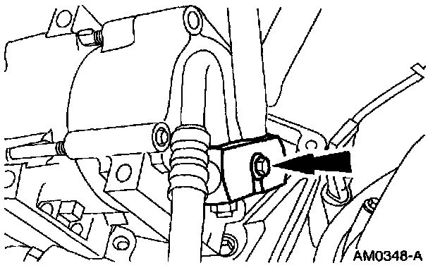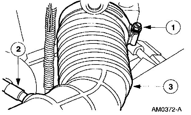 ^ Apply Pipe Sealant with Teflon(R) D8AZ-19554-A or equivalent meeting Ford specifications WSK-M2G340-A2 and ESR-M18P7-A to the threads of the A/C manifold retaining bolt.