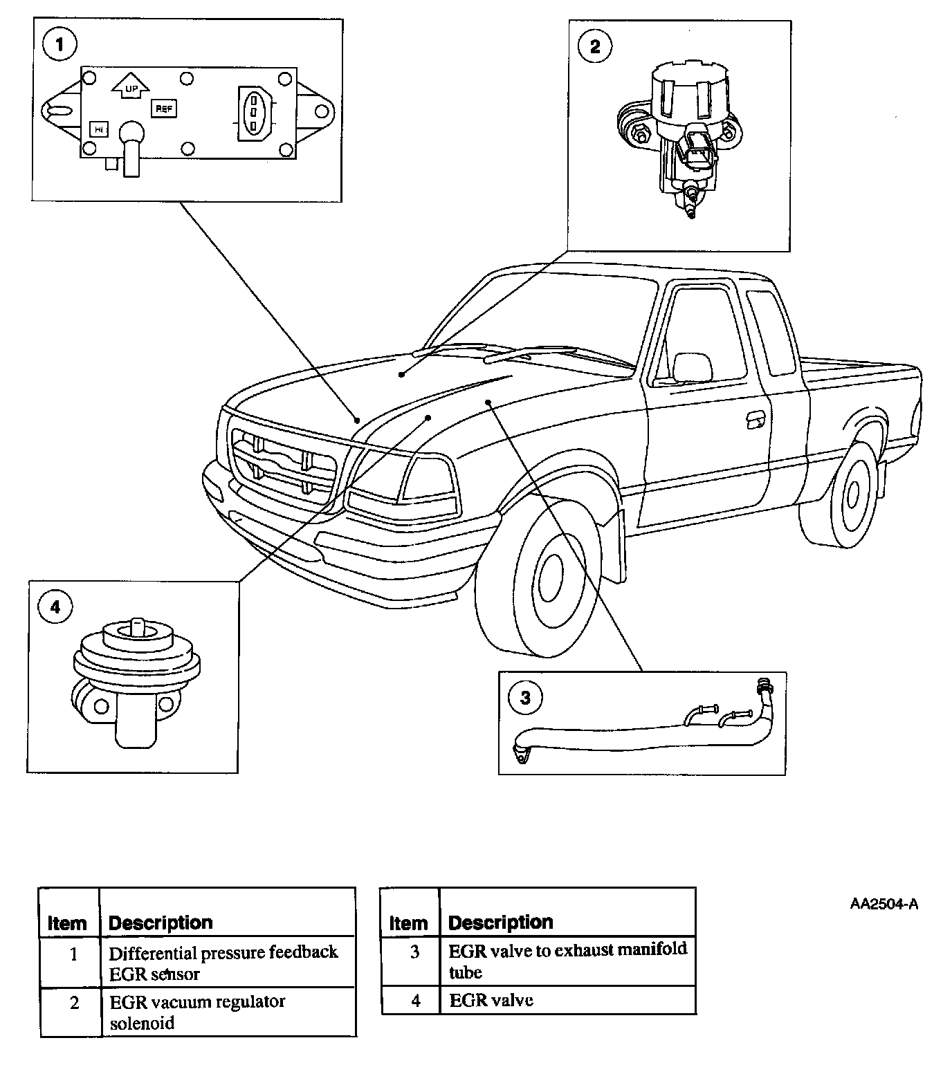 The Powertrain Control Module (PCM) controls the EGR vacuum regulator solenoid. The EGR vacuum regulator solenoid controls the vacuum to the EGR valve. When the EGR valve opens, exhaust gas flows to the intake manifold to be returned to the combustion cycle. The differential pressure feedback EGR sensor monitors the flow and returns a signal to the Powertrain Control Module (PCM).
