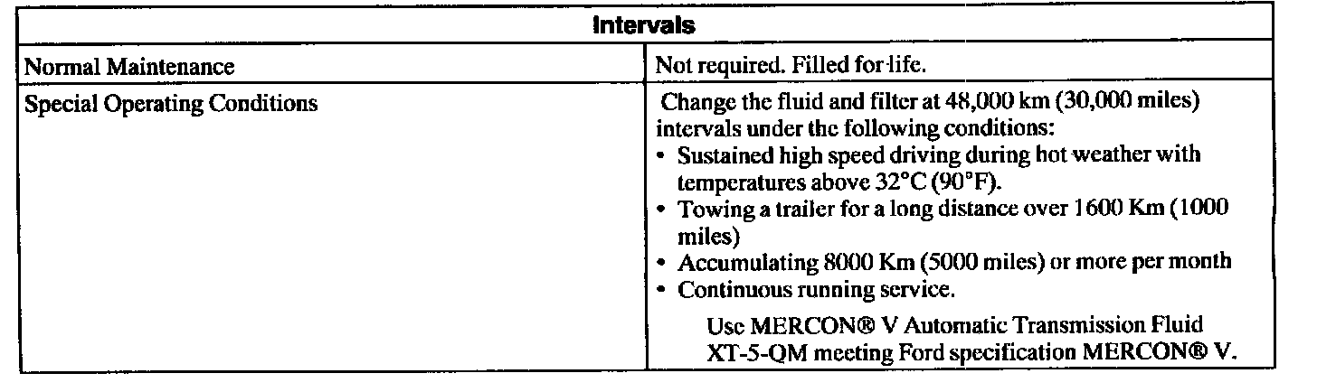 Use only MERCON V Automatic Transmission Fluid XT-5-QM meeting Ford specification MERCON V. Use of any other fluids may result in a transmission malfunction or failure.