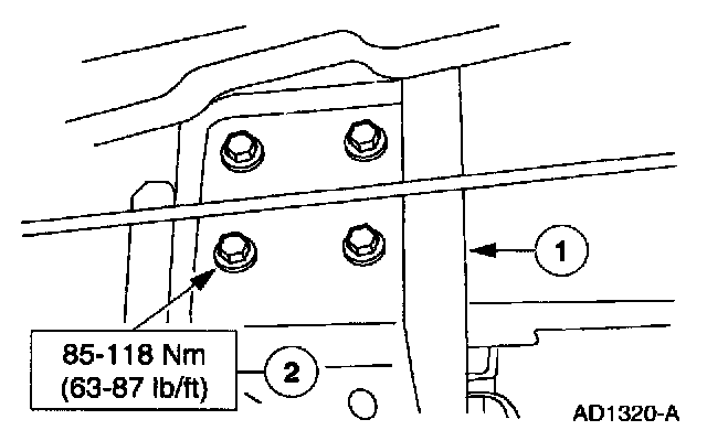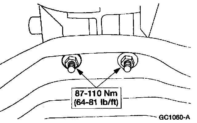 9. Install the transmission mount into the crossmember and tighten the nuts.
