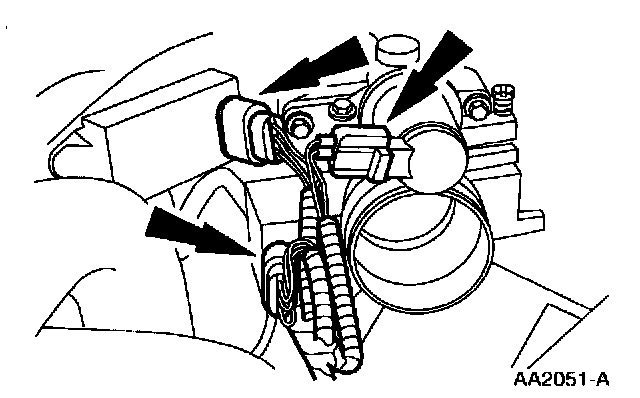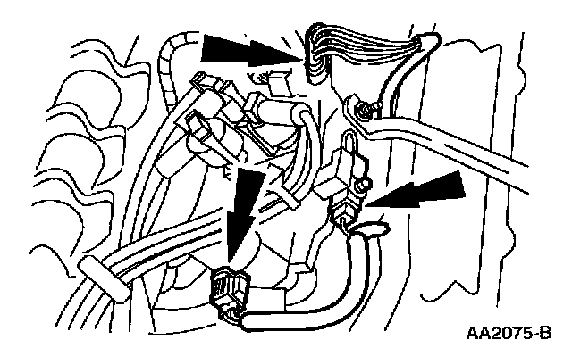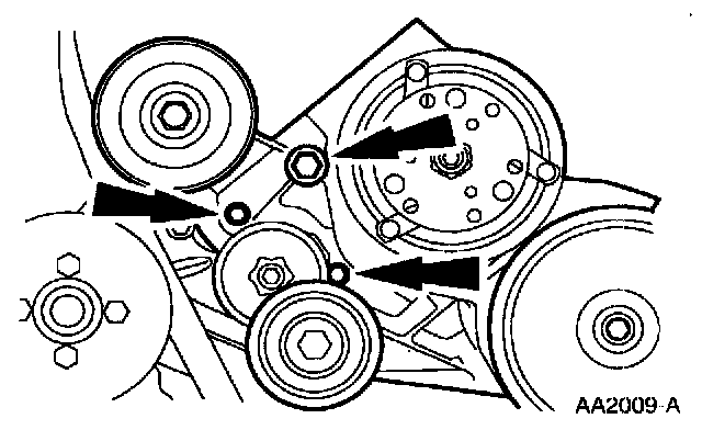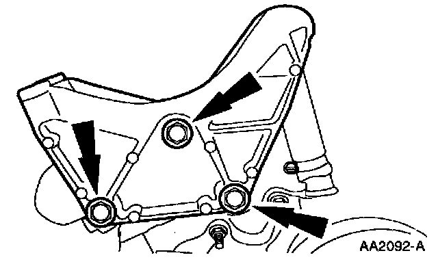 7. Remove the bolts and the A/C compressor mounting bracket.