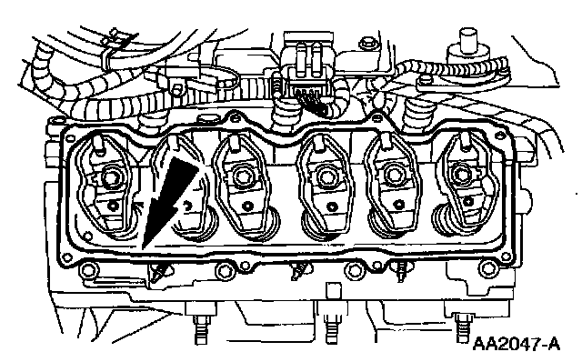 17. Note: To prevent stretching the valve cover gasket, loosen silicone gasket and sealant from the cylinder head by sliding a flat knife between the valve cover gasket and cylinder head.
