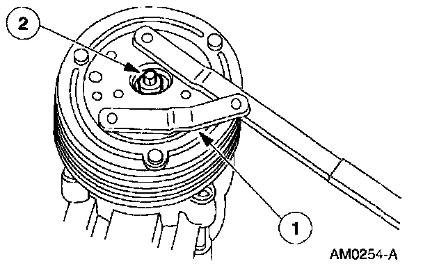 CAUTION: Do not use air tools. The A/C clutch field coil can be easily damaged.