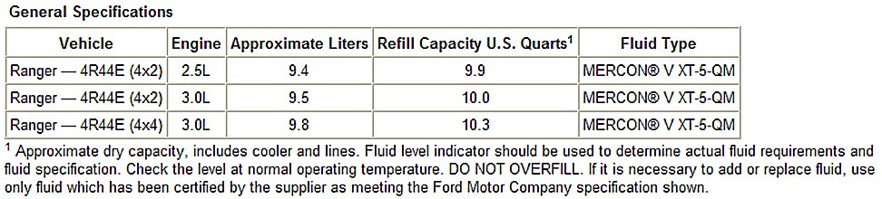 Ranger 4WD V6-3.0L VIN V Flex Fuel