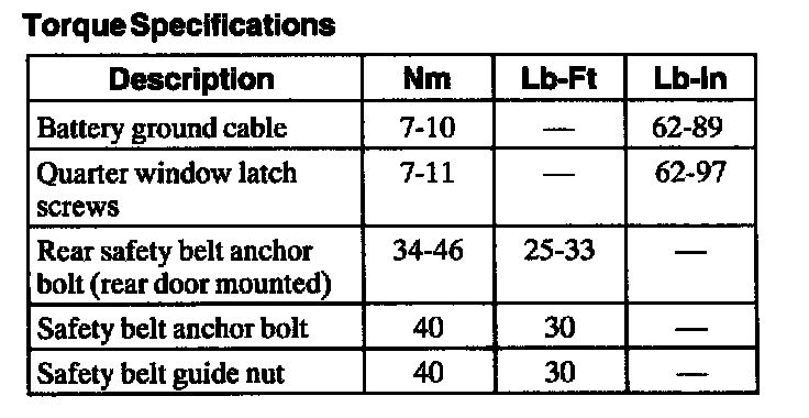 Torque Specifications: