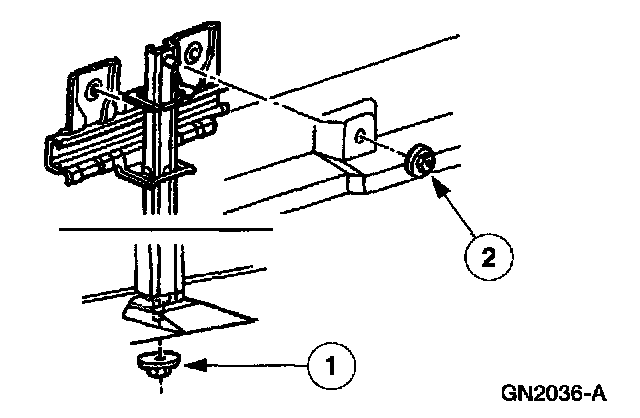 2. Remove the door glass center run retainer nuts.