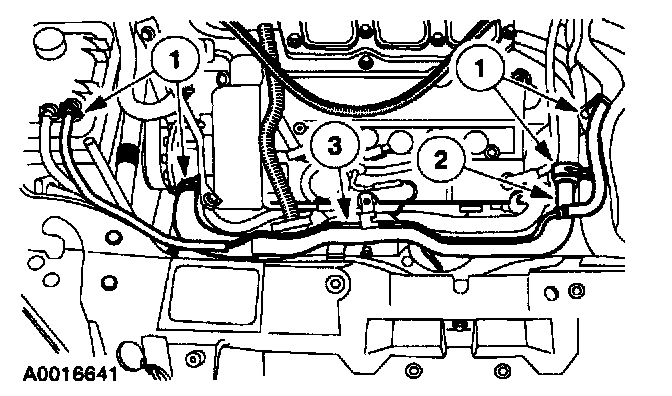 13. Disconnect the compressor hose and tube assembly spring lock coupling. Remove and discard the O-ring seal.