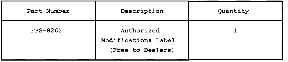 PARTS REQUIREMENTS