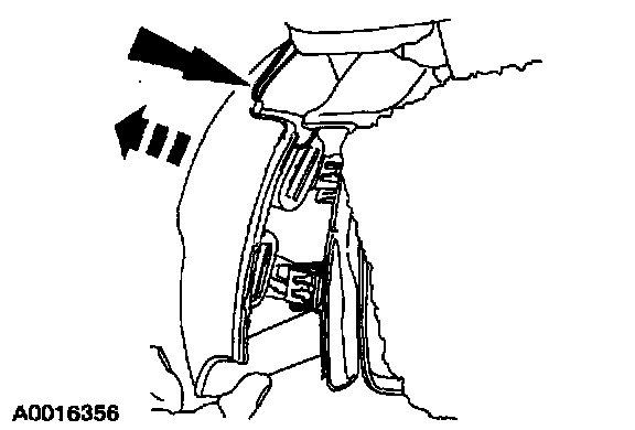 2 Carefully pull forward on the side shield releasing the hidden clip at the front of the seat cushion frame.