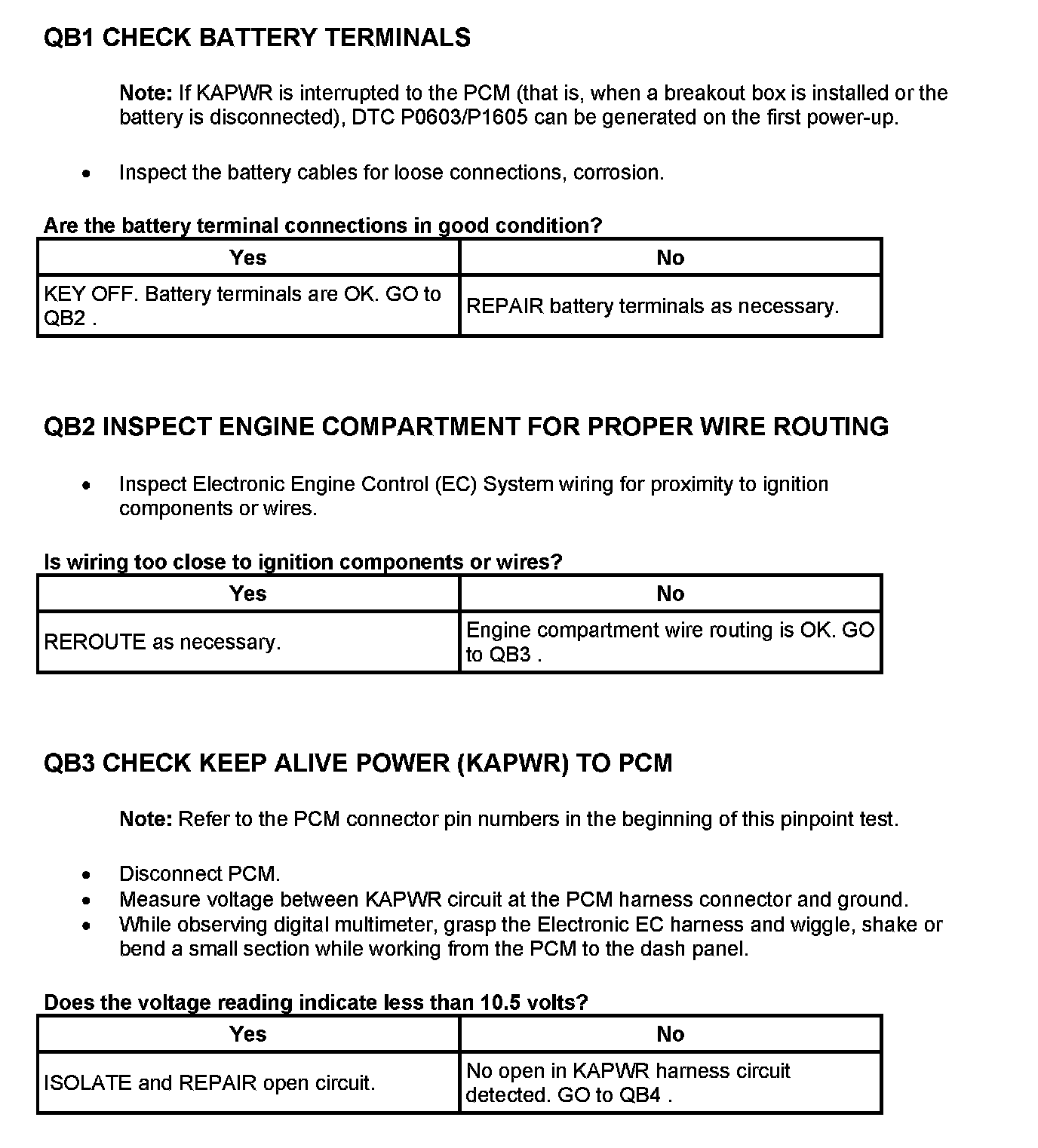 Tests QB: Diagnostic Trouble Code (DTC) P0603/P1605/P1633