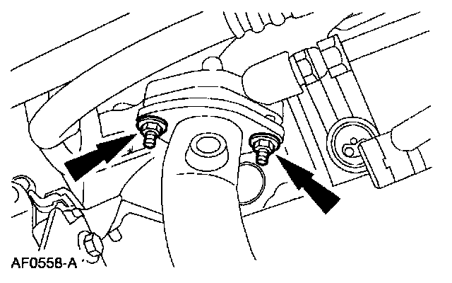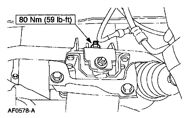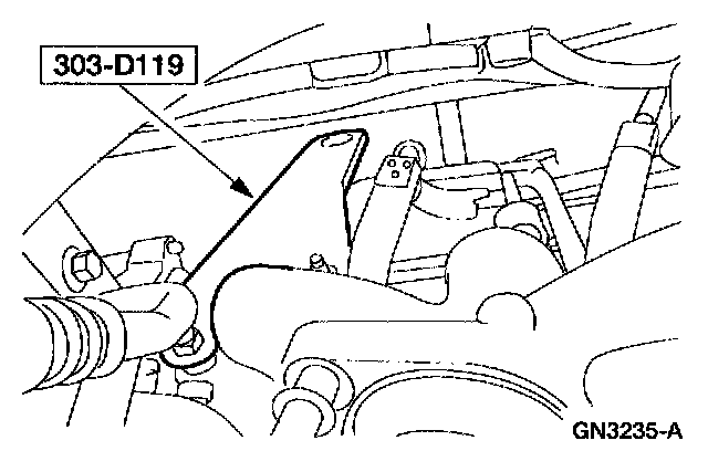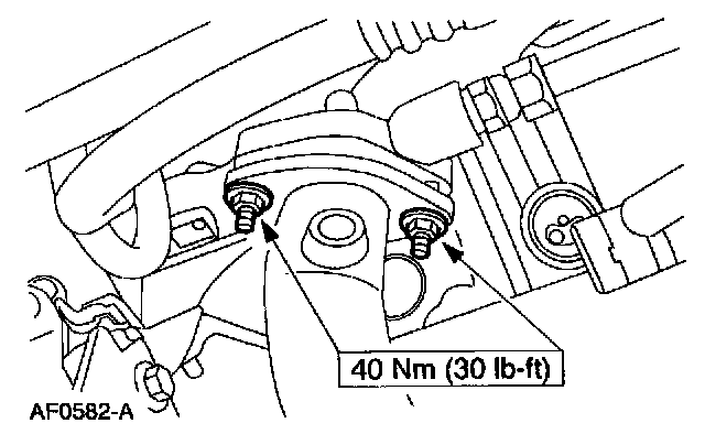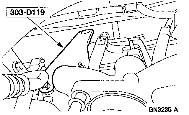 27. NOTE: Using a suitable lift, slightly lower the subframe to gain access to the power steering lines.
