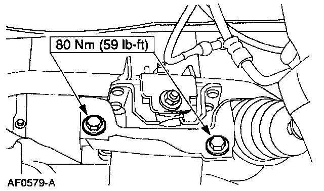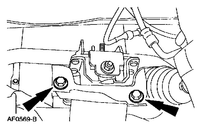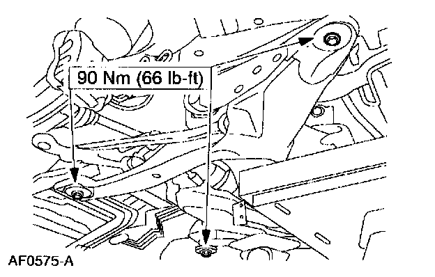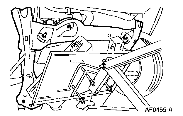 26. Position a suitable lift under the vehicle and raise it to the subframe.
