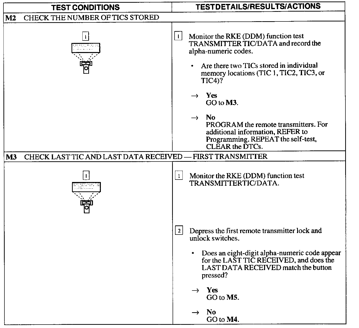 Test M: Doors Do Not Lock/Unlock Using the Remote Transmitter