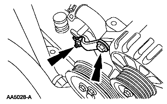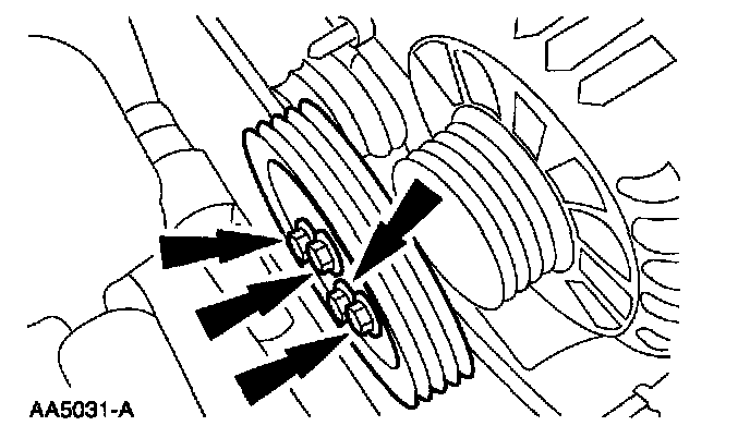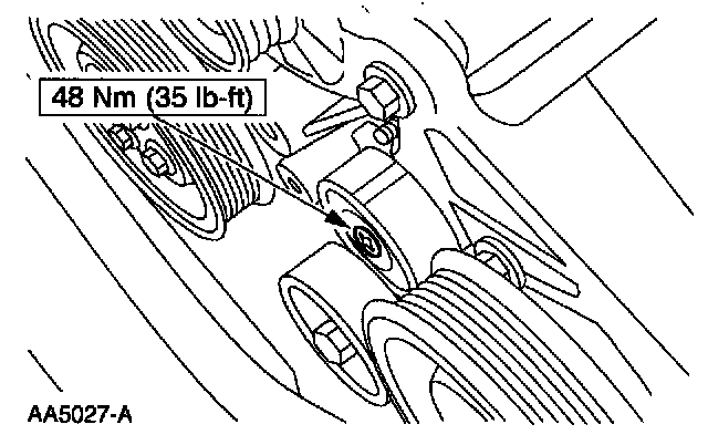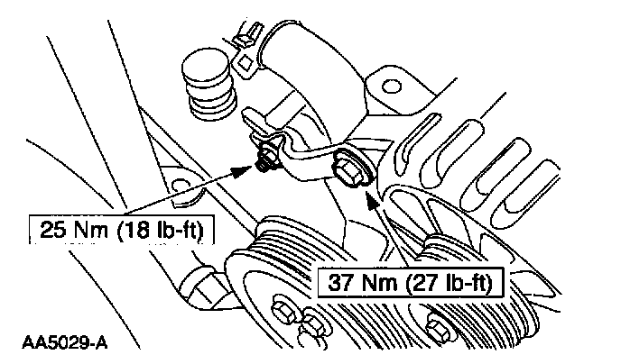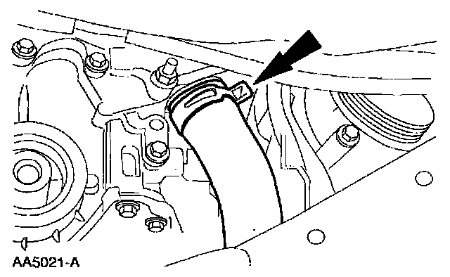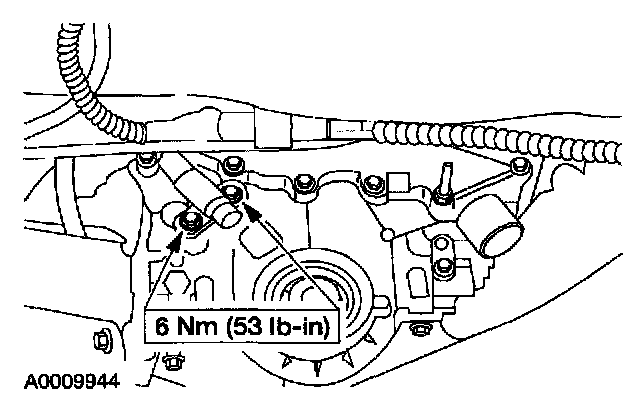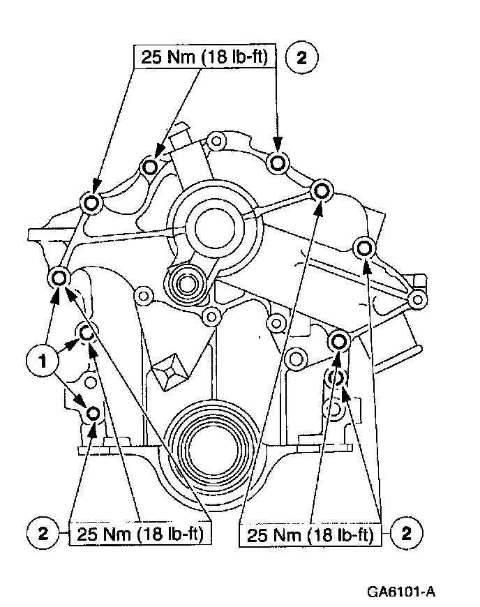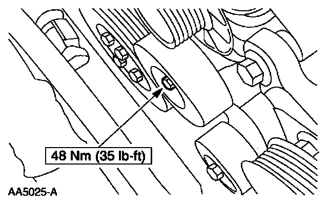 1 Apply Pipe Sealant with Teflon D8AZ-19554-A or equivalent meeting Ford specifications WSK-M2G350-A2 and ESR-M18P-A to the bolts indicated.