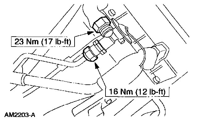 CAUTION: Use a wrench on each side of the fitting to prevent damage to the A/C fitting.
